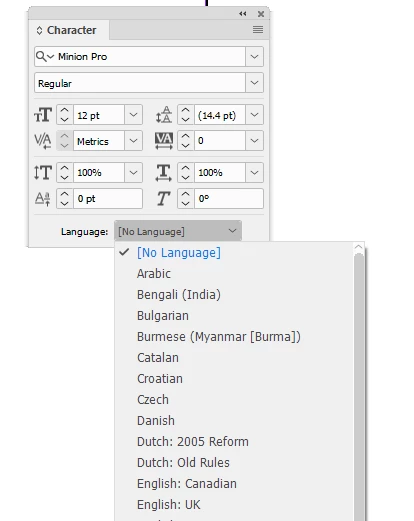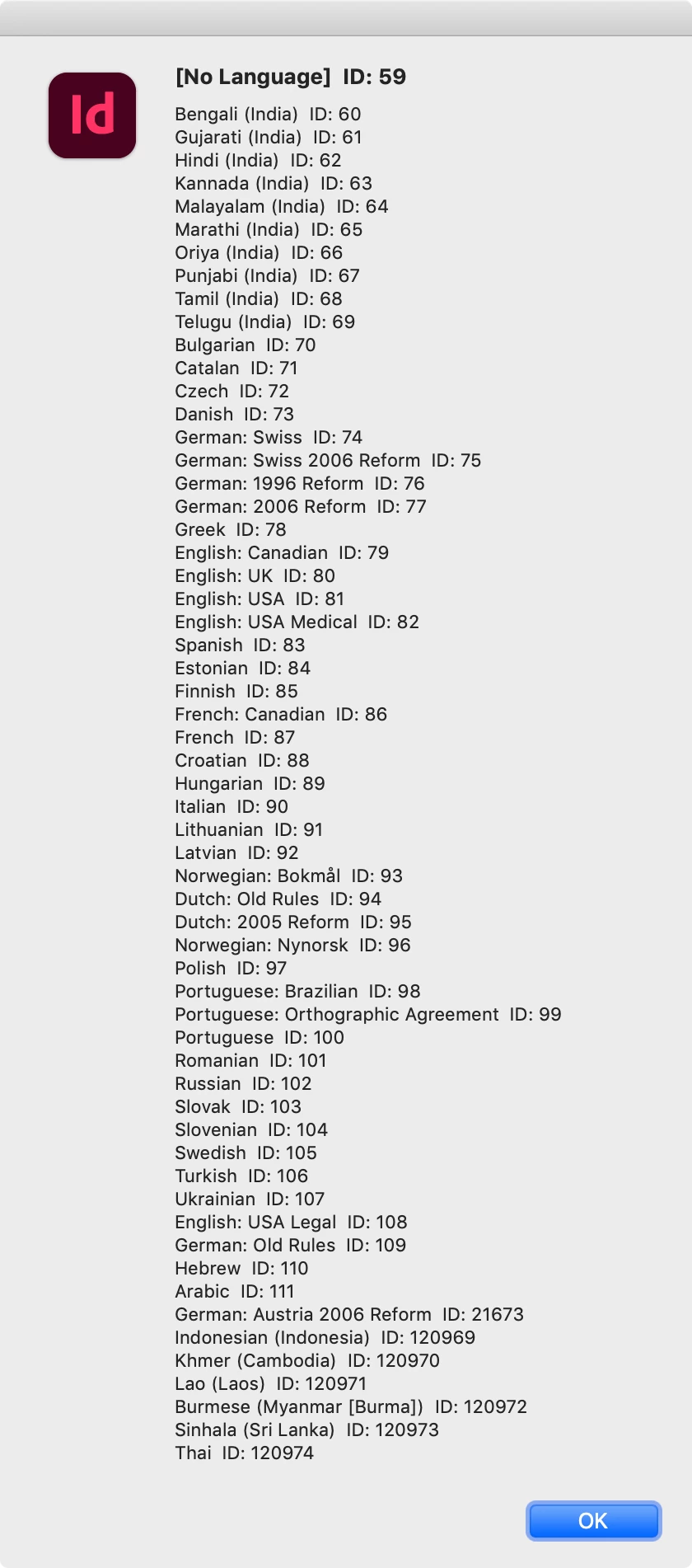 No, I can't see it as you mentioned. I think its common in English based Indesign.
