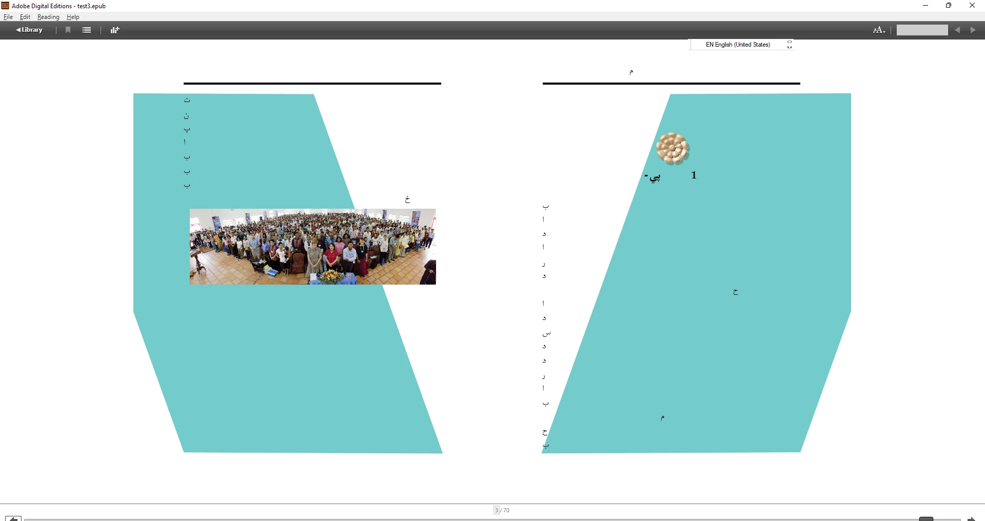 Arabic text no showing on epub - fixed layout