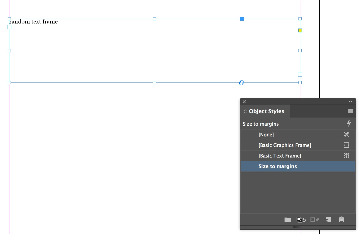 An advantage to this technique is if the paper size or margins change, you can edit the Object style and update the size and position of all the frames that are using the style.