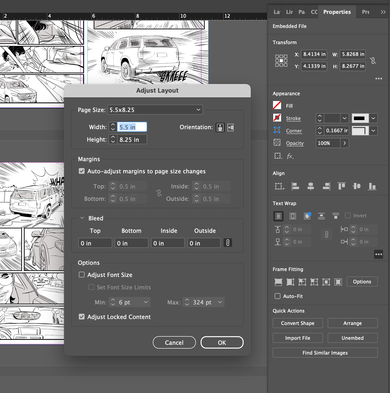 I am working on a 100+page document in indesign and needed to change it from 8x11 to 5.5x8.25. I was able to make the adjustment; however, the content is the incorrect size. Is there a way to auto apply the content frame setting and also have the content fit to the frame, without going to each page to adjust frame size and then select content fit? Just wondering if I can make it easier on myself.