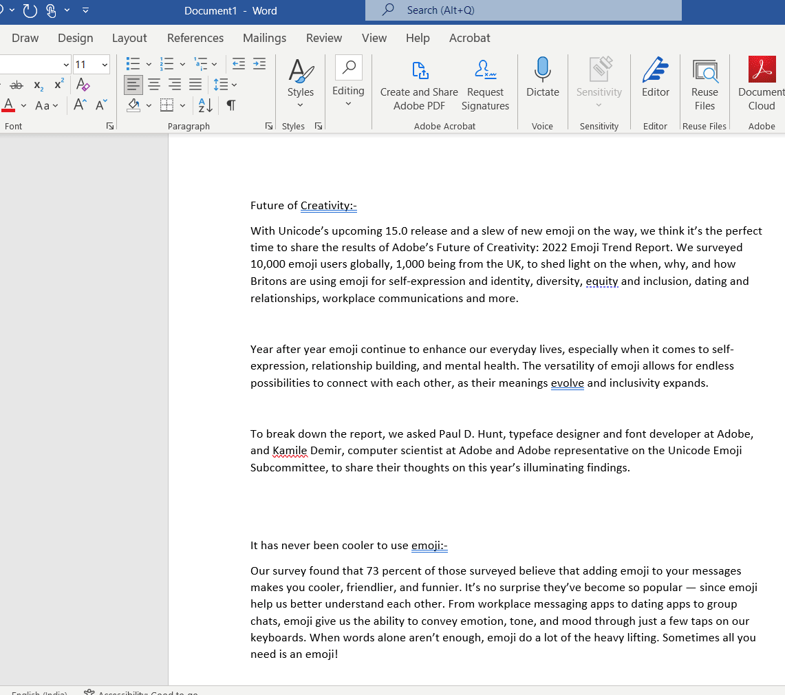 The below example depicts styling text copied from MS Word:-