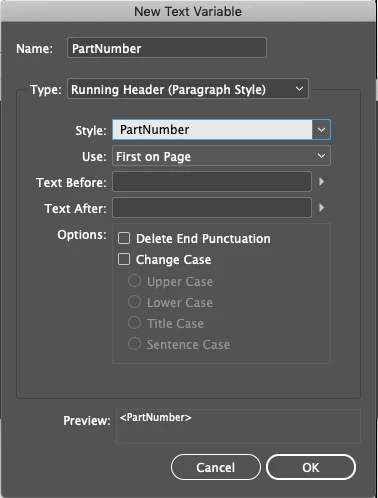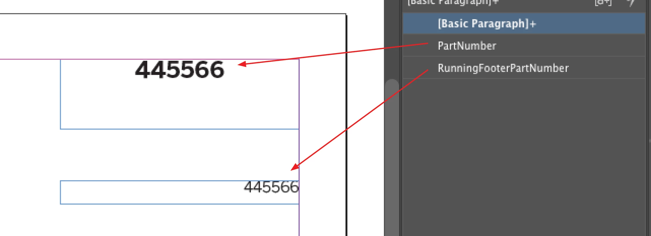 My documents contain part numbers in 2-3 places. Once on the title page, once on the product page and in every following page at the bottom right corner of each document. Right now, I edit each location. My question is, can I get indesign to autofill those three locations if I just type into 1 of them?