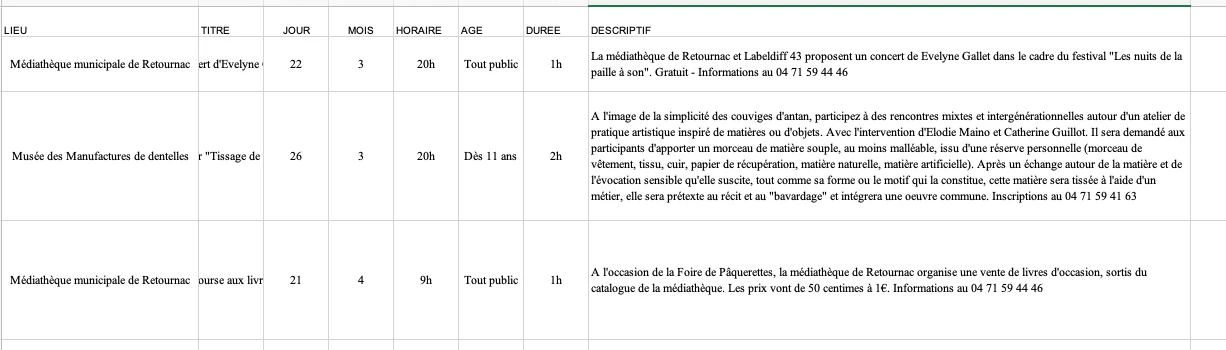 J'édite un magazine culturel en print et j'ai une très grosse partie "agenda". Mes partenaires remplissent un fichier excel avec (nom, date, durée, descriptif etc...) Je fais ensuite un publipostage sur "word" pour intégrer des textes du type "A..., le..., tarif...". Ensuite je l'intégres sur indesign en copie collant ligne par ligne.