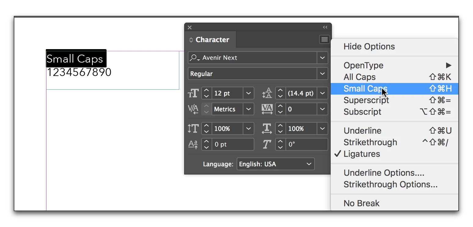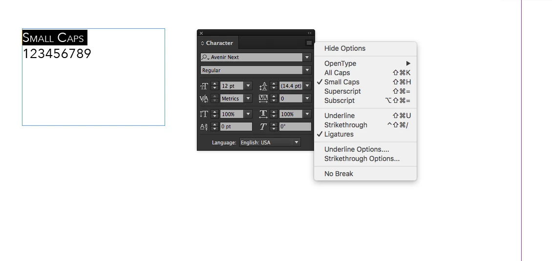 BarbBinder, What are you showing in the Avenir Next screenshot? That's what I've been looking at back and forth since yesterday, wondering why it is not translating to InDesign. Thanks!