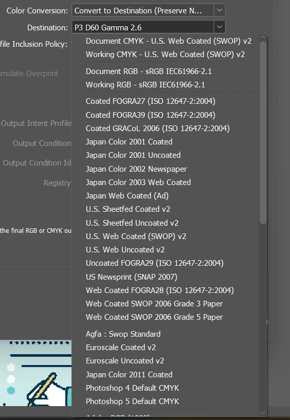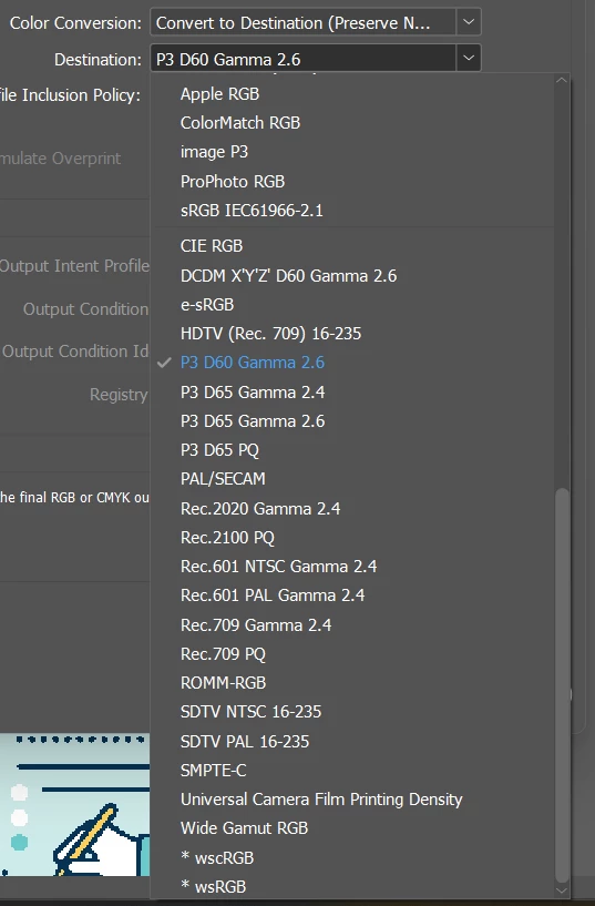 I got a new computer and installed InDesign. I have a document that I design in color and then export to pdf in black and white for printing. I used to have a preset which is gone now. I can re-create it but I have no black and white options in the color destination option that I can see.