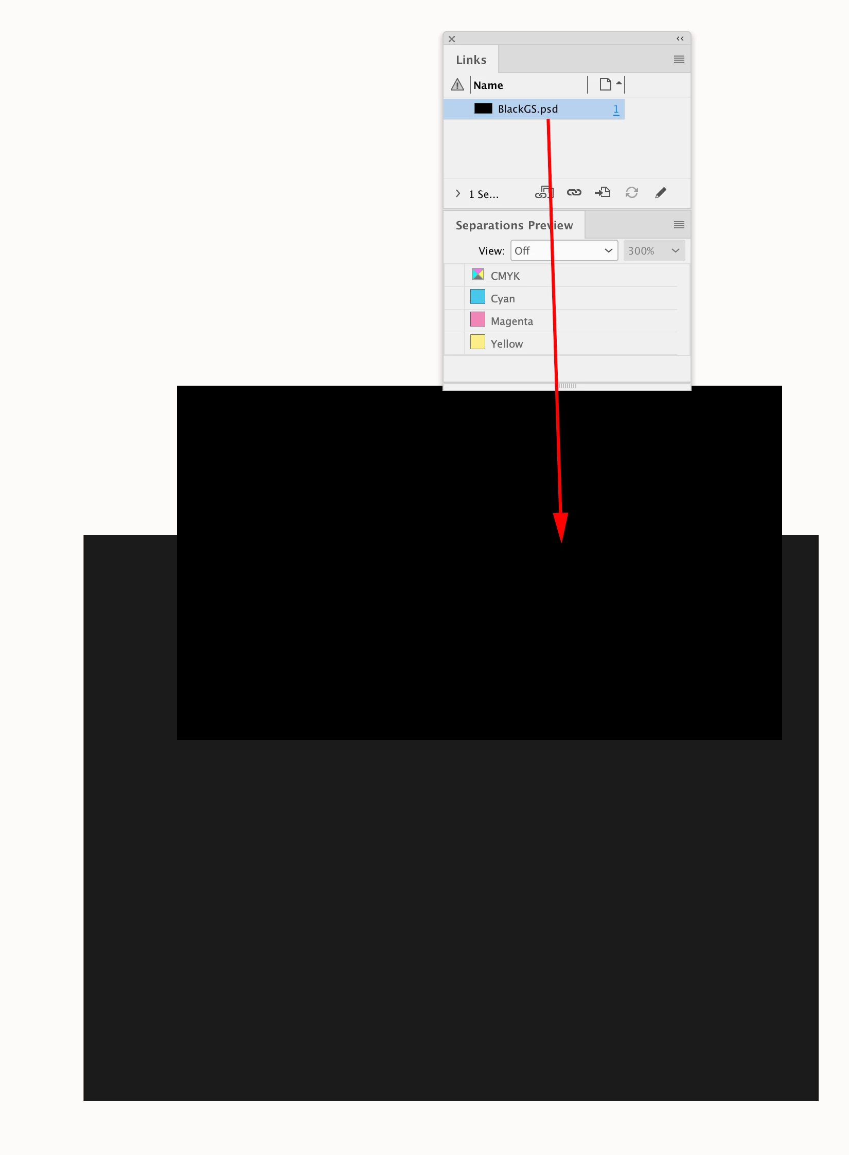 When I place this image against a black background in InDesign, the two different black backgrounds look different. I don't understand why, or how to fix this.