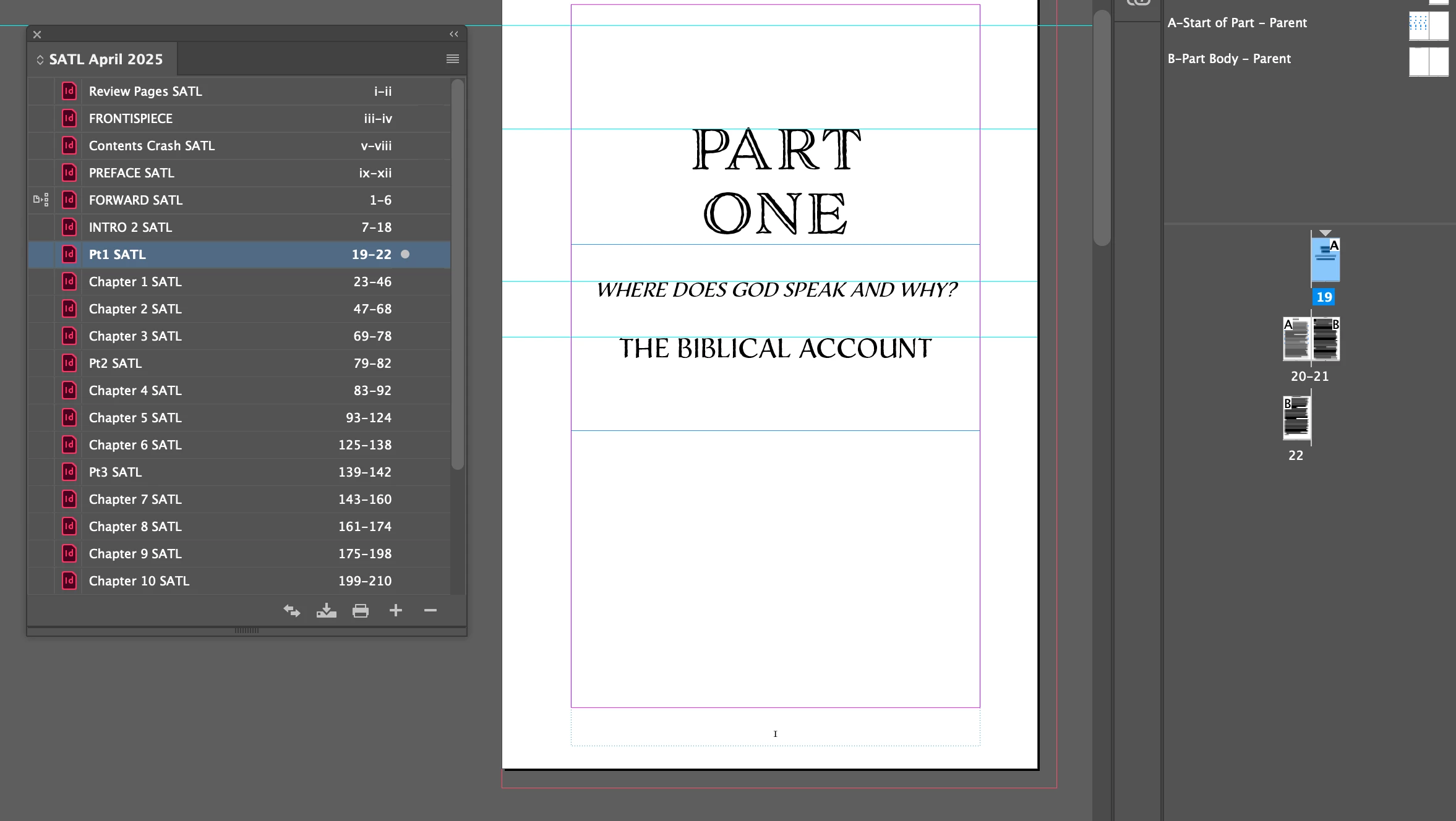 The Book panel and the styles panel show the correct number, which in this example is page 19, but the number on the actual document in question is "1".