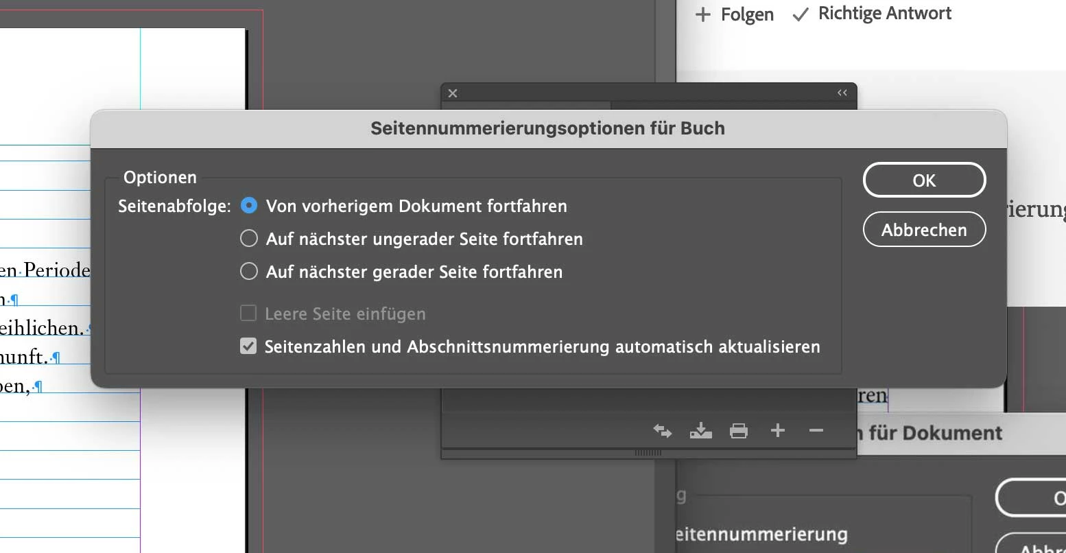 Buchfunktion - Seitennummerierung funktioniert nicht