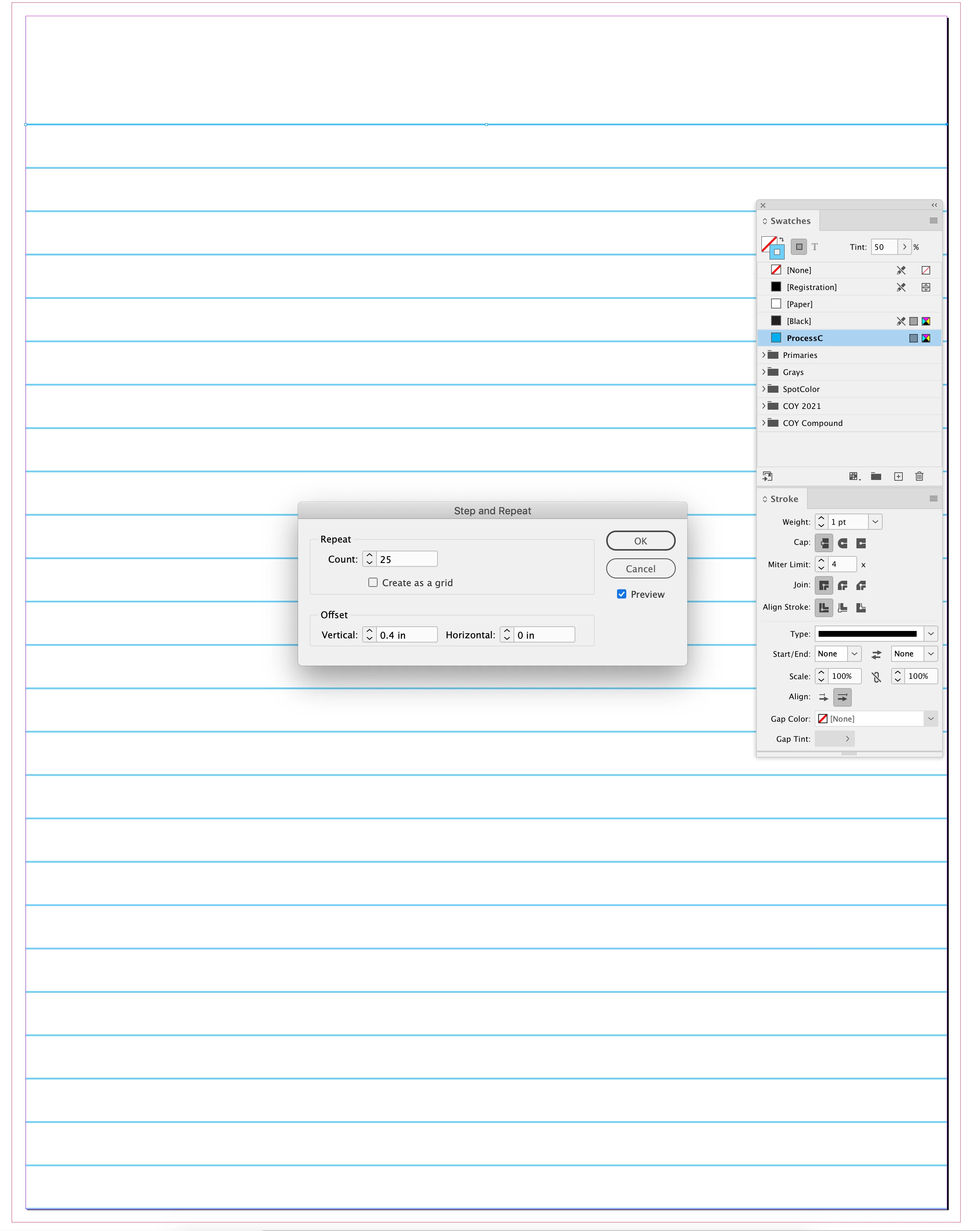 I want to draw multiple lines in InDesign as guides for writing notes by hand.