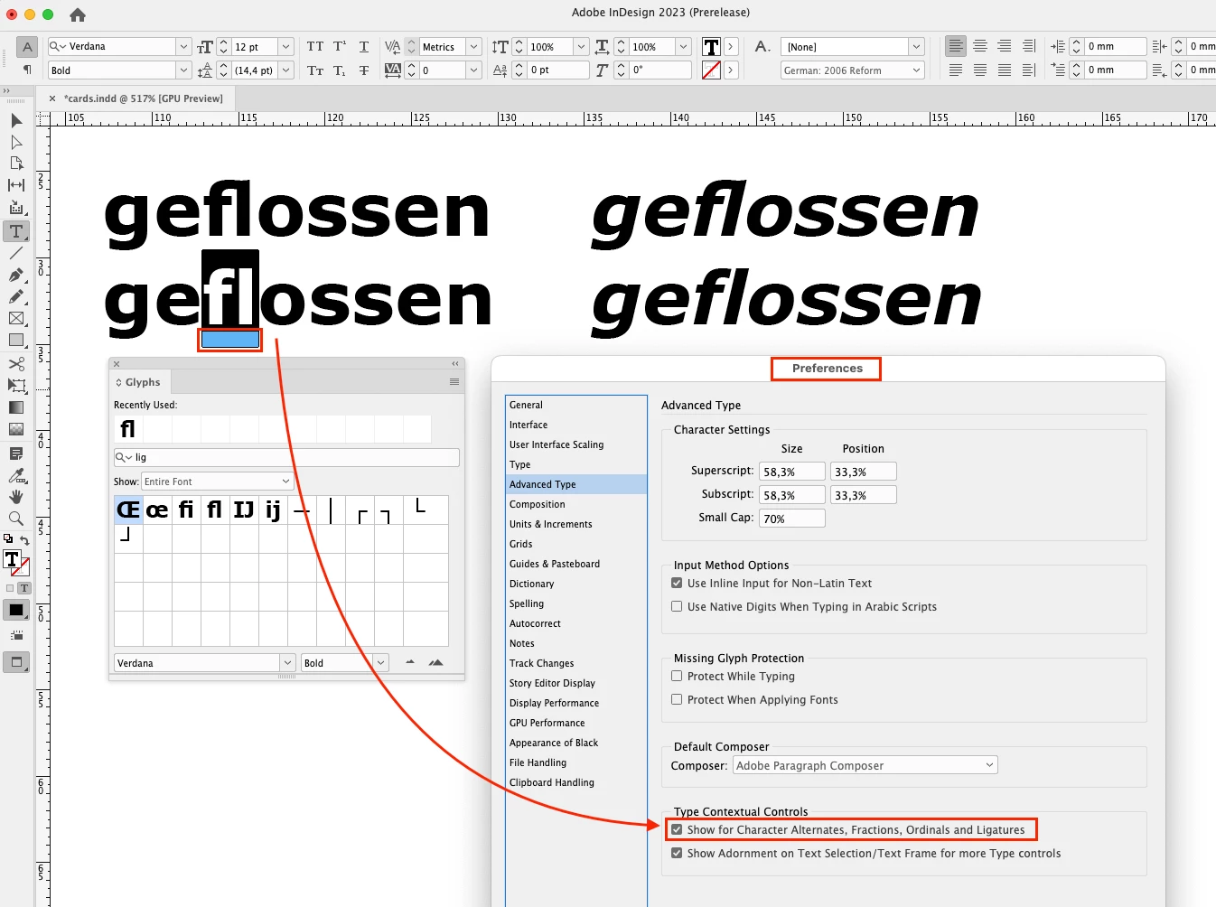 Bug InDesign 2023 – Ligaturproblem fl