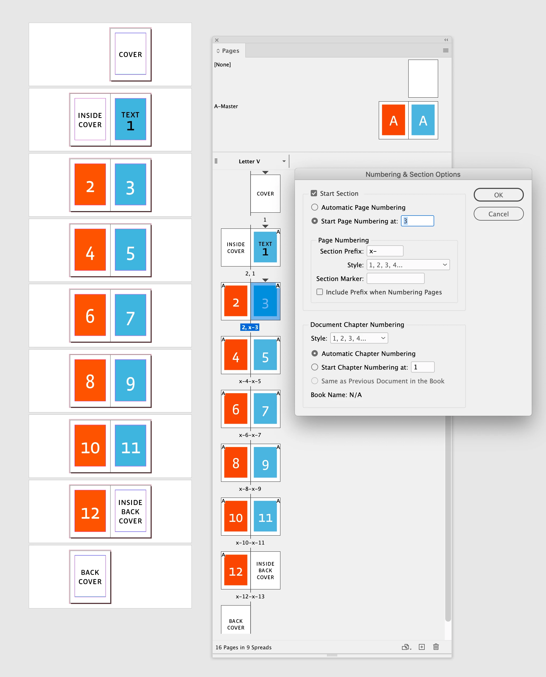 In the Pages panel, right-click a page, hit Numbering & Section Options.