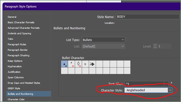 I have a question about organizing bullets in Adobe InDesign. I created a character style for bullets and nested it in a paragraph style. Later, I changed the bullet size from the character style. Currently, it seems that the bullets are positioned at the top of the text. How can I center the bullets in the middle of the first line? I would appreciate any help.
