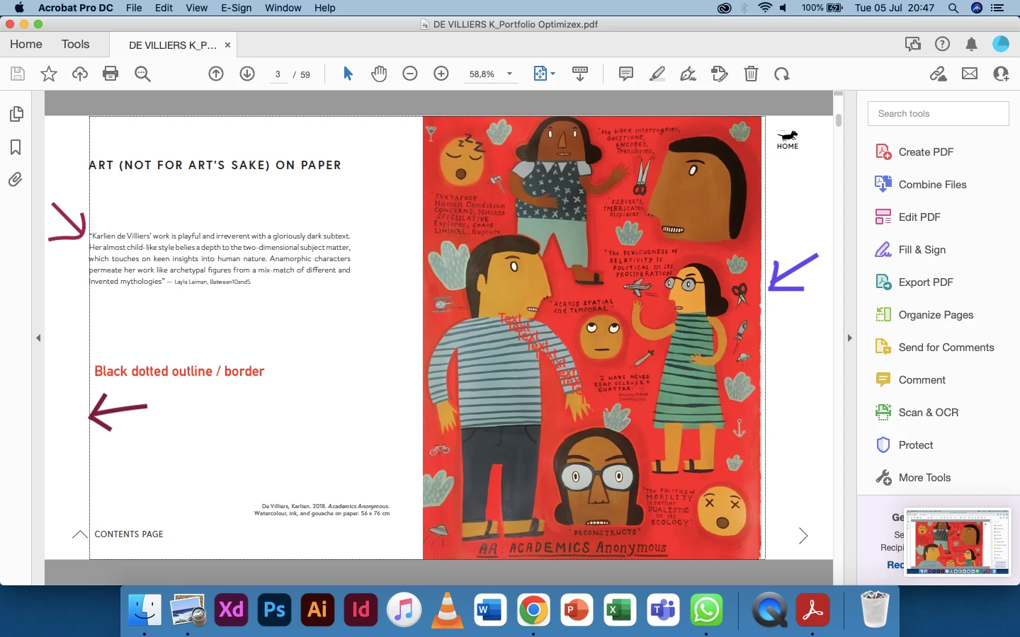 I need these borders to not be visible when random reader/viewers open the PDF on their computers (as I have no idea what pdf viewer they may have installed, or whether they have Mac (Preview) or Windows/Acrobat etc) - so I need the PDF to view correctly, without the dotted outline "bounding box" borders when opened on the majority of viewers' computers.