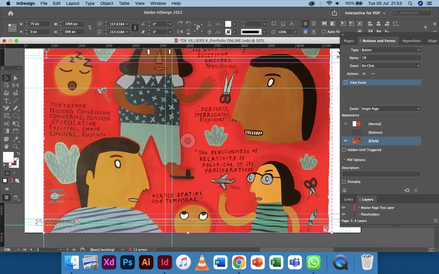 Buttons bounding box: black dotted outline/borders visible - Indesign interactive PDF in Acrobat