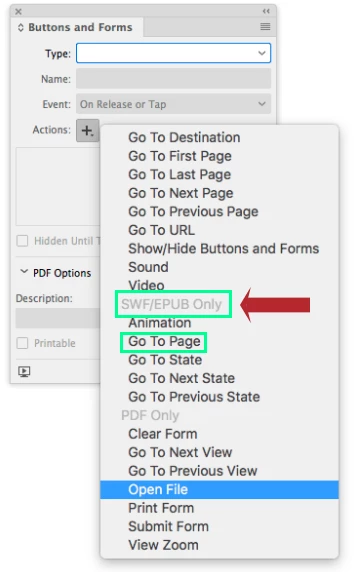 Buttons/go to page not supported when saving as pdf