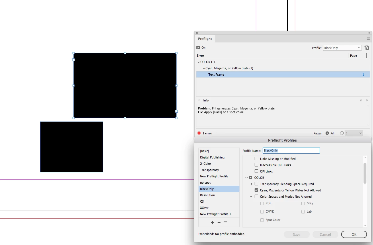InDesign items on the page know nothing about color space Grayscale.