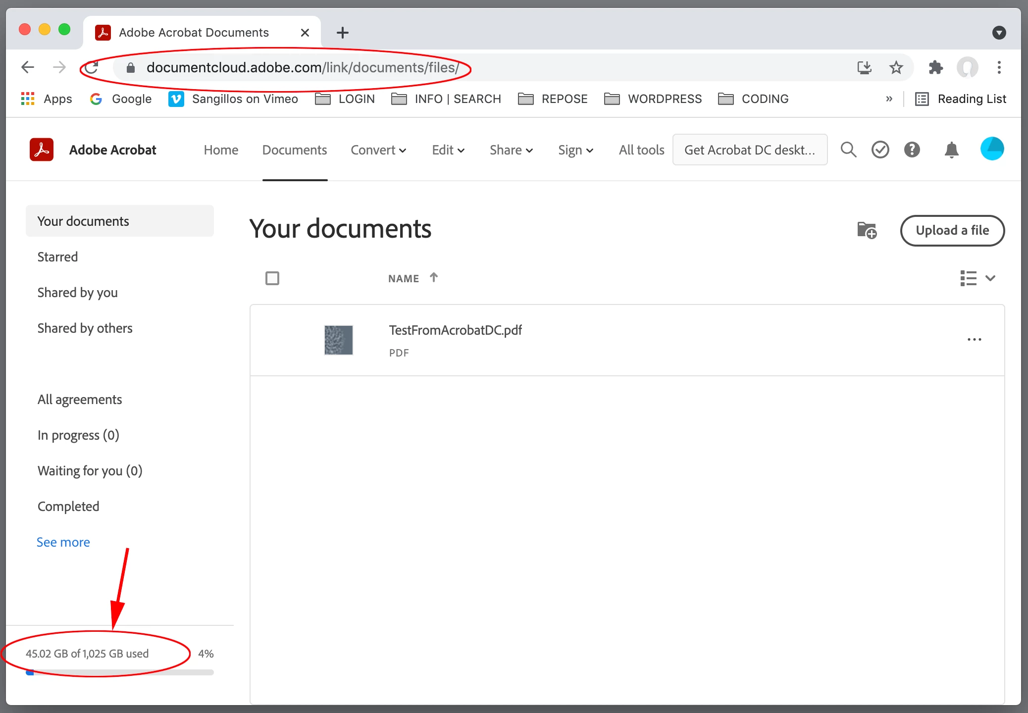 Document Cloud includes 2GB of free storage or 100GB of storage with Acrobat DC subscription. With the exception of Adobe Send, the Document Cloud services allow you to upload and convert files that are up to 100MB. The file size limit for compressed PDF is 500MB.