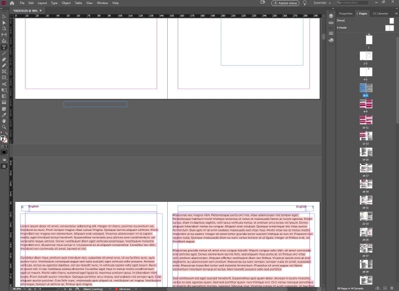 This is caused by the pasteboard: the space around my page boundaries is treated as significant. I've tried setting my pasteboard margins to 0 mm, but that doesn't help: I still can't go to the next spread with a single keystroke. I can't use the mouse either: clicking on a page in the Pages pane has the same result, with my page appearing on the edge of the screen instead of in the center.