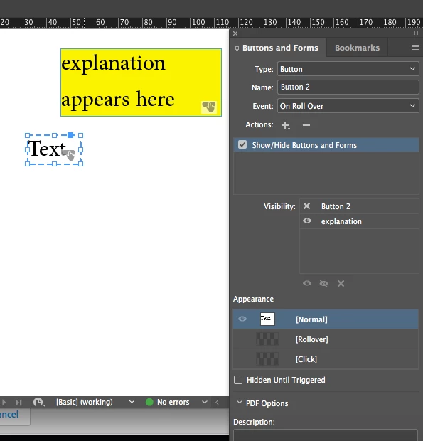 Can interactive rollover buttons be made accessible in a .pdf?