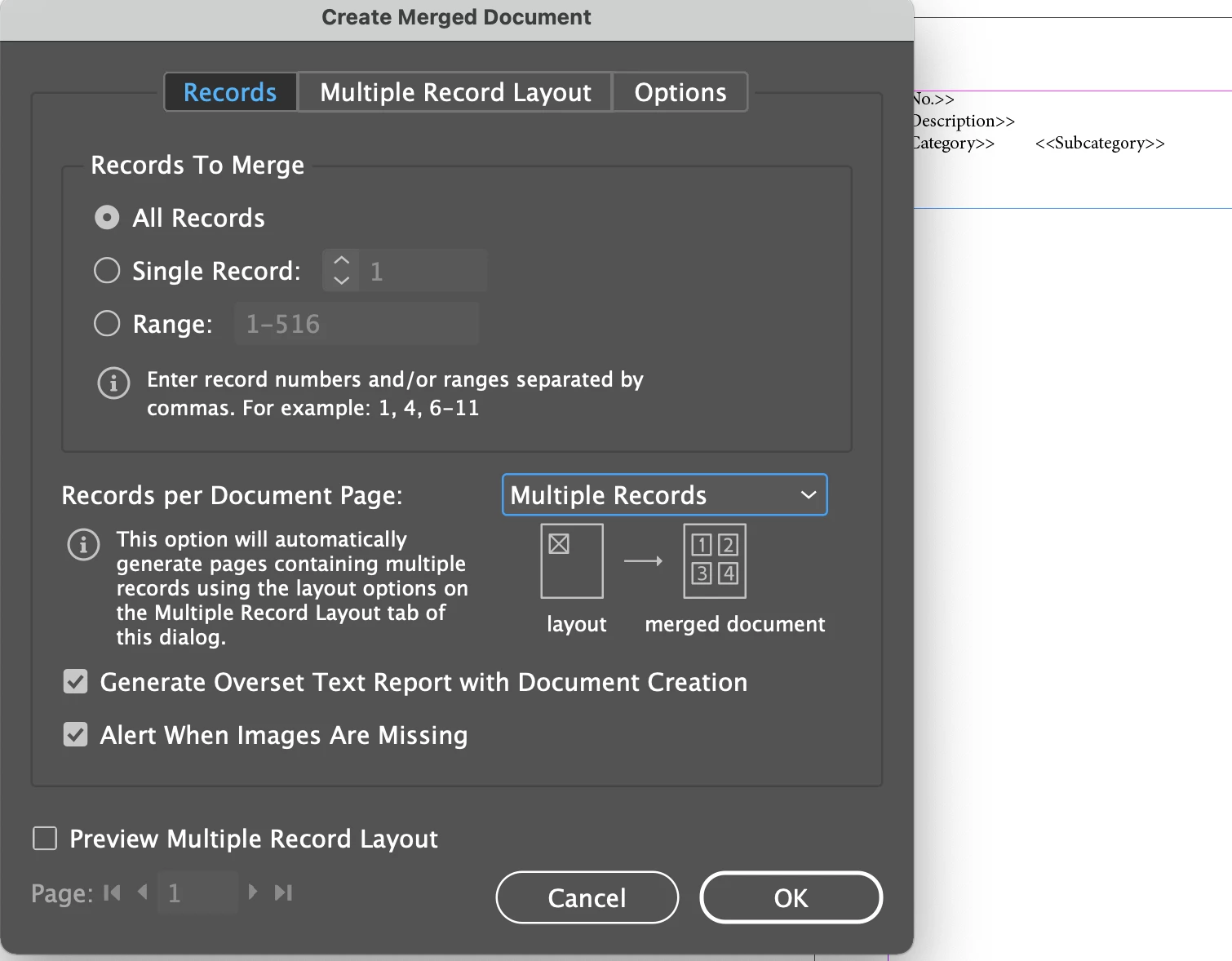 I'm working on a catalog and I'm trying to figure out how to data merge info from Excel (multiple rows and columns) into InDesign going into multiple text boxes on one page. I can only flow in the first line of info and I can't get the next line to come up into the next text box. Can someone let me know how to or is it even possible to do? Please and thank you for your help.