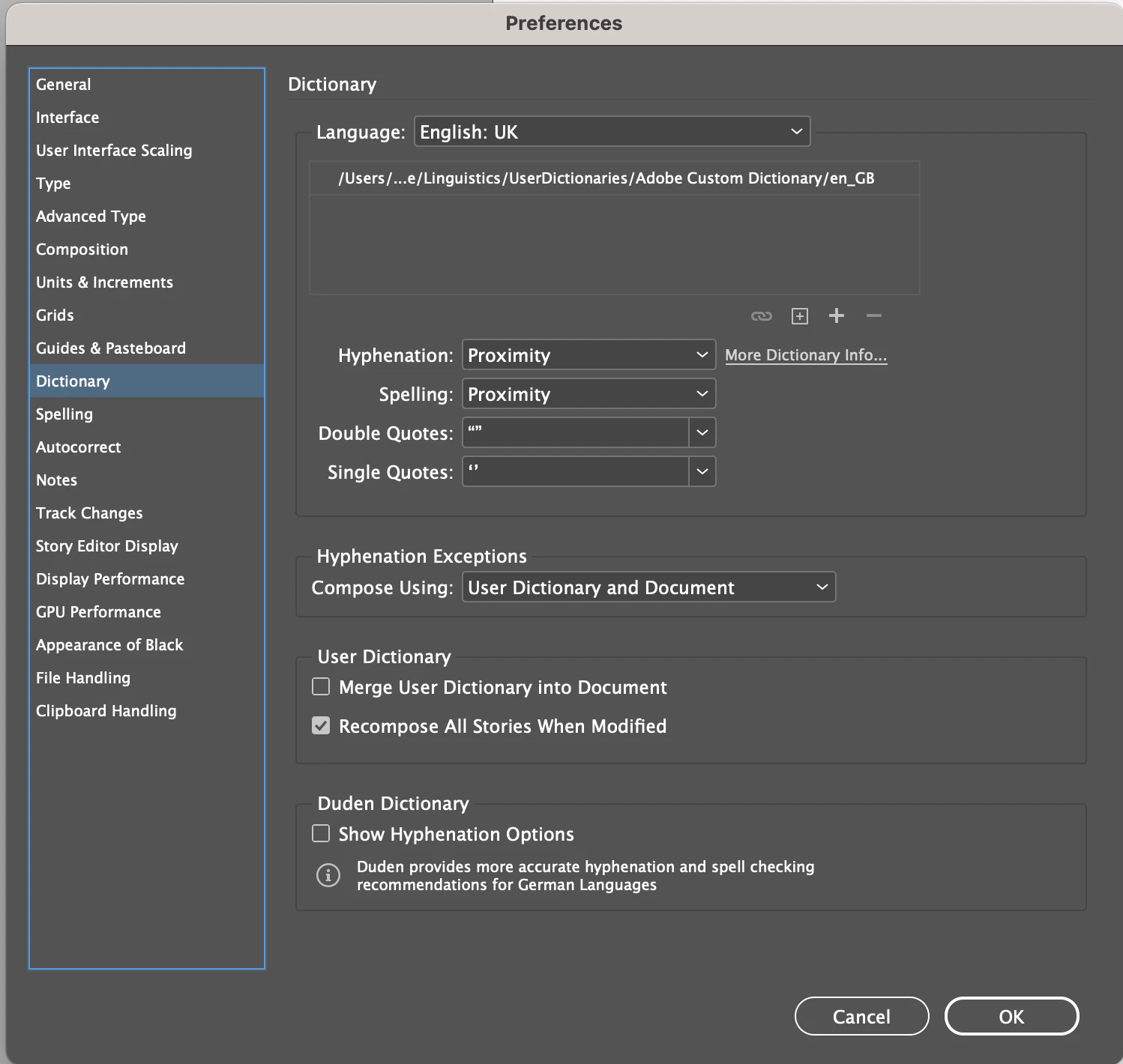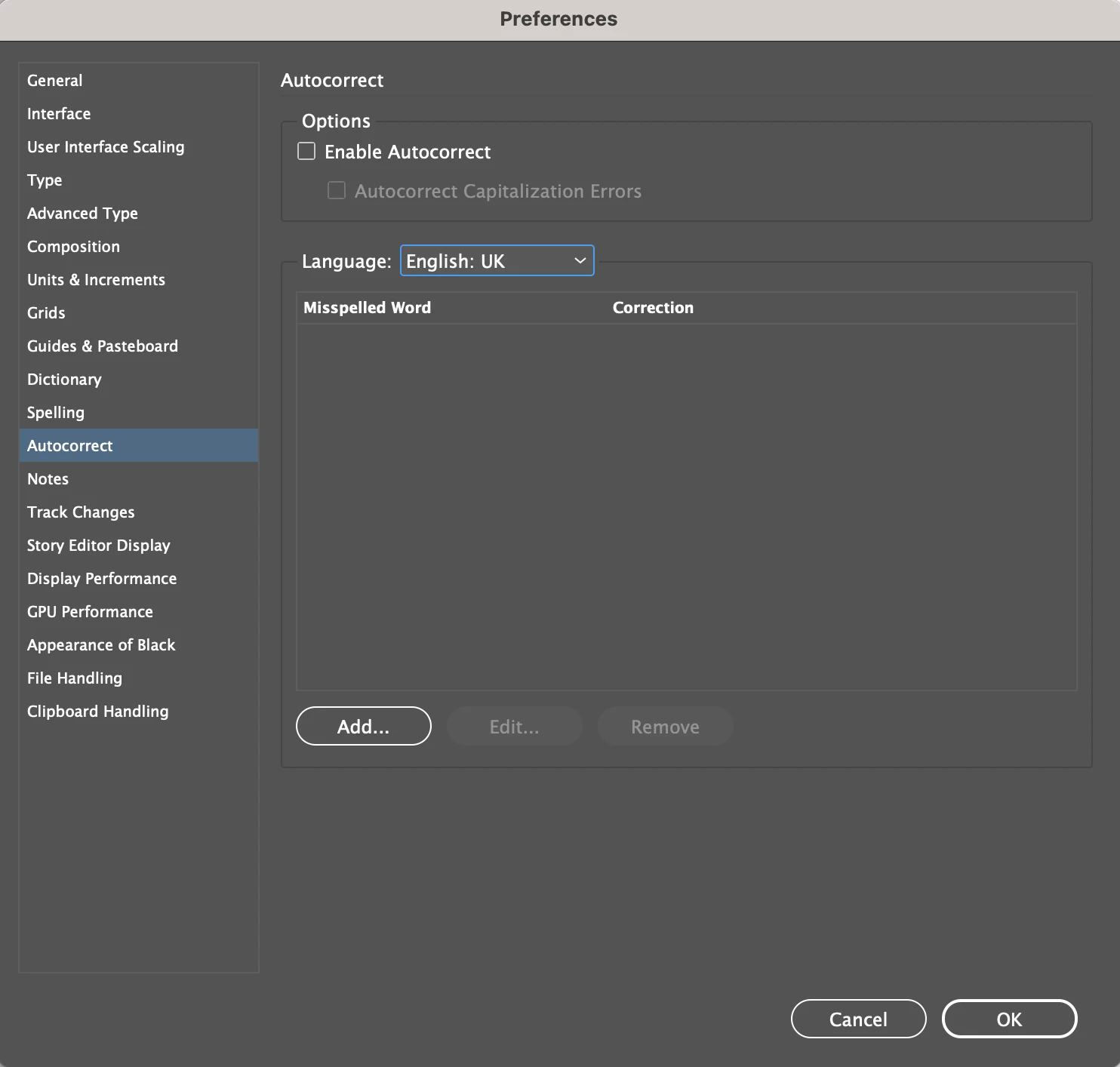 - Changed Autocorrect language to English: UK (even though I don't use it).