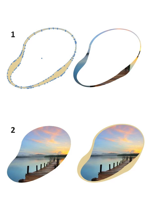 I wanted to place a picture inside the object, so I placed the Illustrator object in InDesign to create a clipping mask with pathfinder. But InDesign sees the border of the object as filling, and that resulted in example 1.