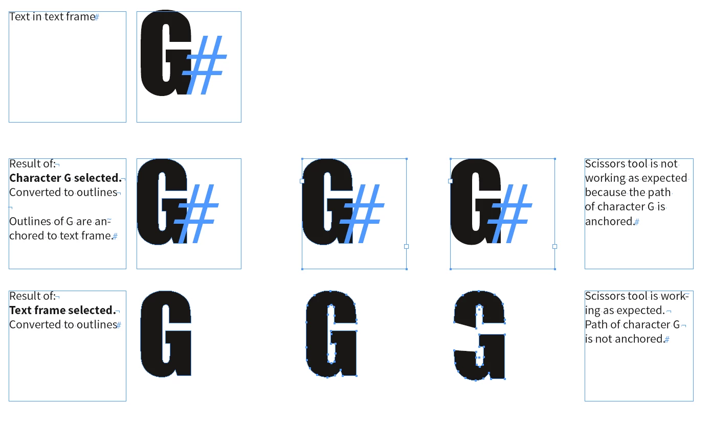 I want to cut out part of a letter. I typed "G". I used type>create outlines. With ruler guides i made precise point of reference for cutting. Then I selected scicoors and tried to click on the point I wanted to remove. I wanted to remove rectangle shape. But i can't select any points. I cliked everywhere and scicoors does nothing. How to make this points? Or what should i do to cut anything? I will be greatful for help