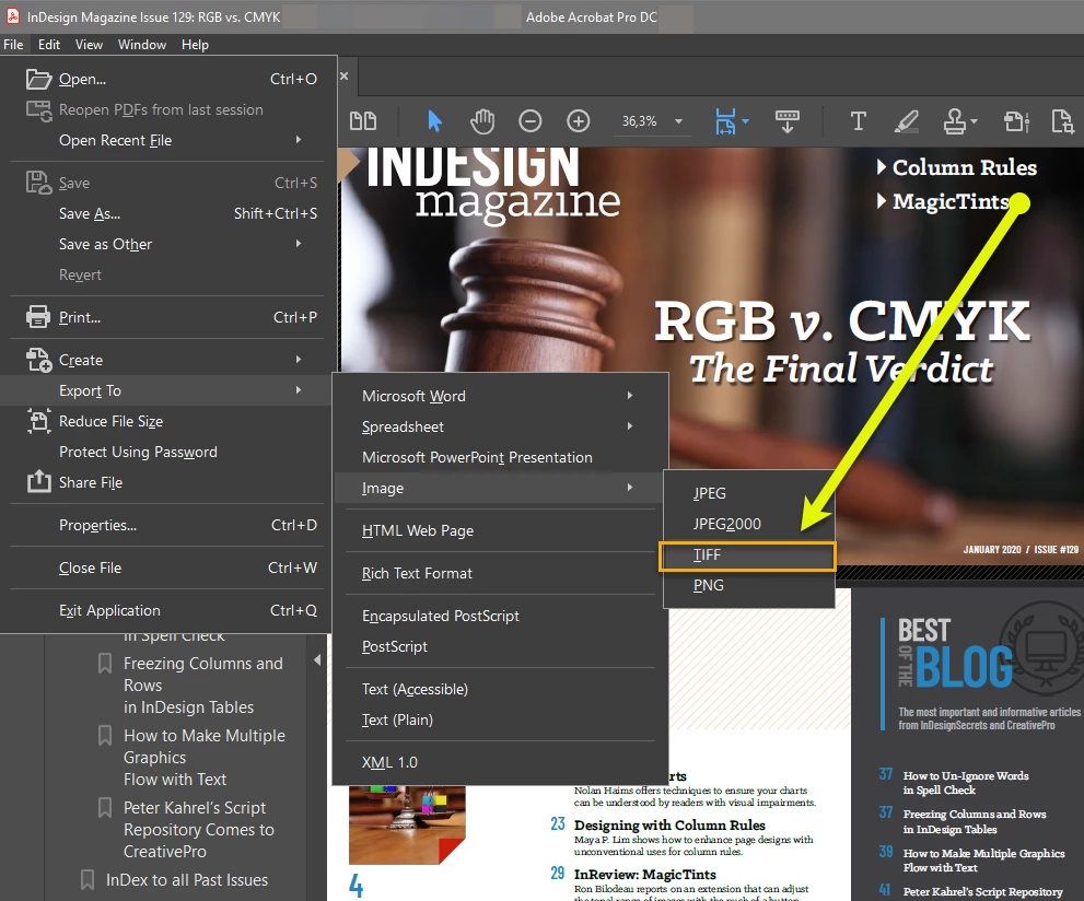 I used to be able to export my InDesign documents as TIFF files but now I am not even given the option when I export. How do I get the option to export my files as a TIFF back?