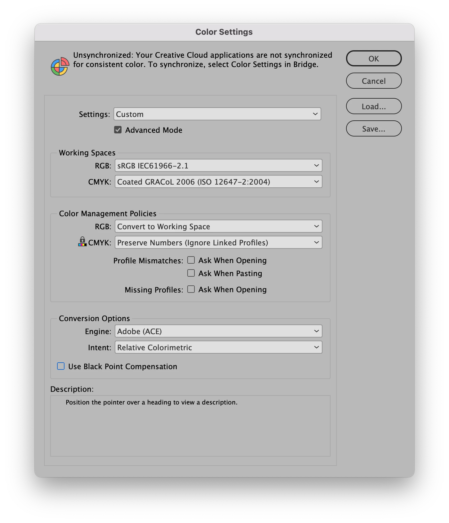 I am so frustrated right now. I used to be able to open my file, print 500 envelopes, and DONE!! Ever since I played with my color settings to make them match where I worked, I can't figure out how to get back to where I was with my printing. I haven't changed my links in my documents, the only thing I have changes is color settings through Bridge so that everything would sync. I can't remember what the setting was before. I have tried so many different things, but I'm not 100% sure of what I'm doing. I did try changing the color setting back to North America General Purpose 2, and the color is closer, but still muddy looking. For example, the color in Photoshop is 100% yellow, but when it prints, it looks like dull mustard. When I look in the linked palette, it says the links are document cmyk.