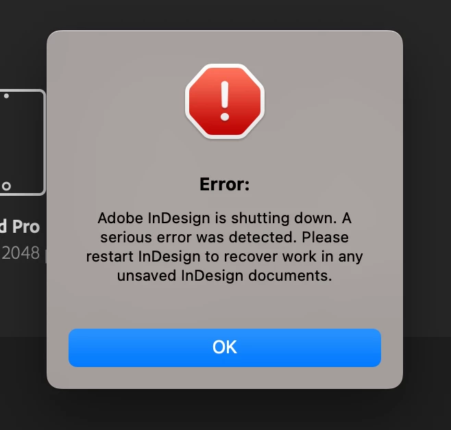Can't open file (Error: Adobe InDesign is shutting down.)