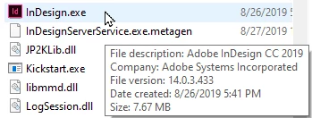 1) Open your File Explorer. Navigate your way to your InDesign.exe file (it should be stored in Program Files>Adobe>InDesign CC 2020>InDesign.exe — if it's not, this may be your first issue). Place your cursor on the file and make sure that it shows File version: 15.1.xx, with the xx accounting for additional build numbers. Knowing this InDesign.exe file is the latest version, and exactly where it's located, is vitally important to the steps below.