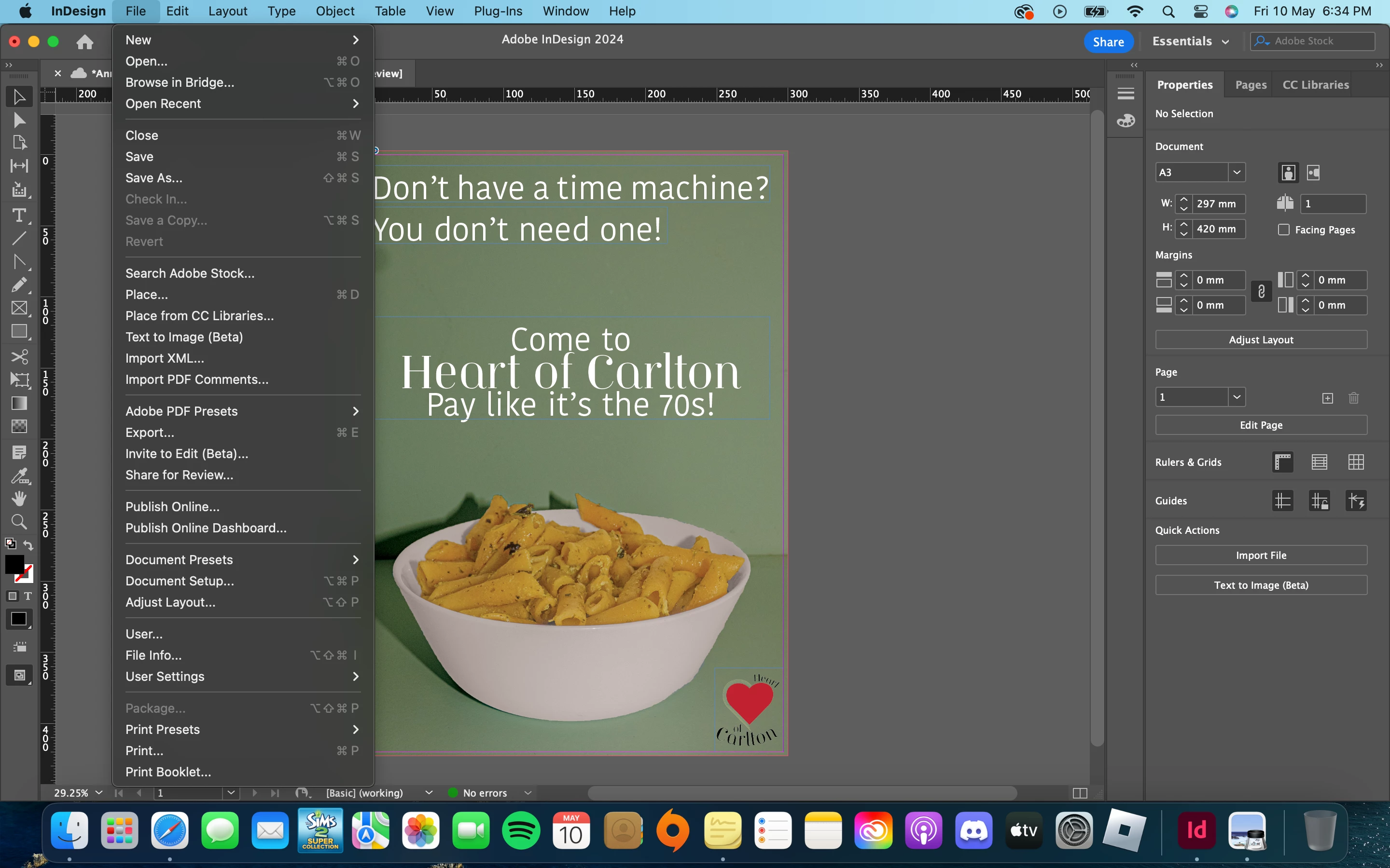 I'm trying to package a file in InDesign for an assignment but I can't even press the button. Can anyone let me know if I've done something wrong while setting up my document? Or any other reason why the button can't be pressed? I added a screenshot too.