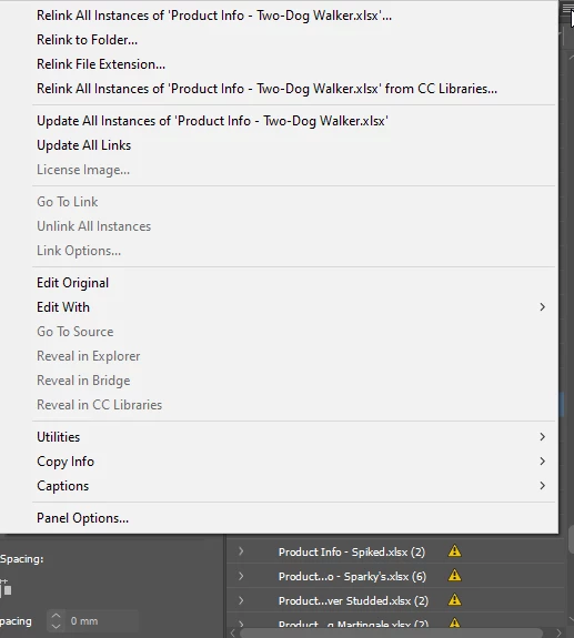 So. I've got hundreds of text boxes with linked Excel data. Many of them have been edited in InDesign, so the content from the linked Excel files is out of date. If I could just unlink the content, that would be perfect. But here's the thing: there's no option to unlink.