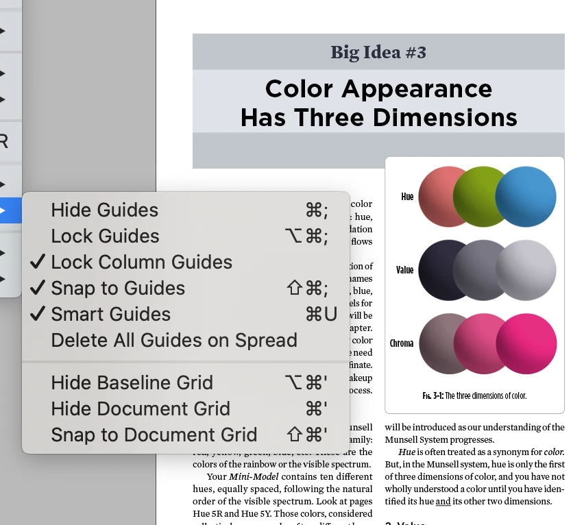 Cat walked across the keyboard and now I can't see my guides. As you can see from this screenshot, my document and baseline grids are unhidden, but they aren't showing. Clicking them on/off makes no difference; I closed InDesign and reopened it and that did not change anything, either.