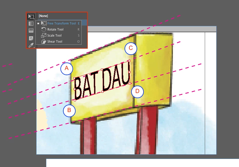 The idea is I want to resize each corner points (A, B, C, D) of the Outlined text to be aligned with the dashed guide lines. Thanks 🙂