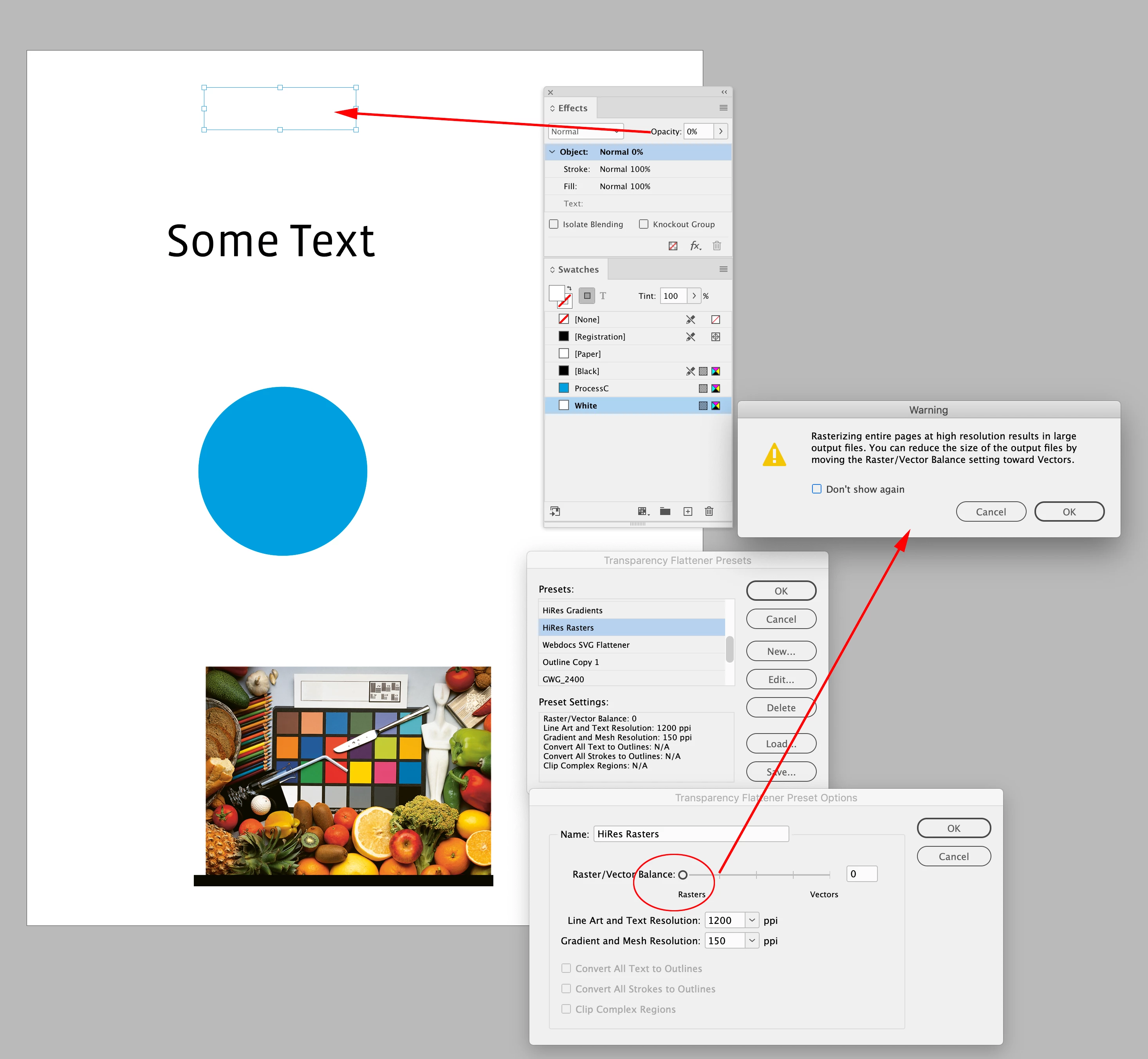 - Vector content is rasterized to pixels
