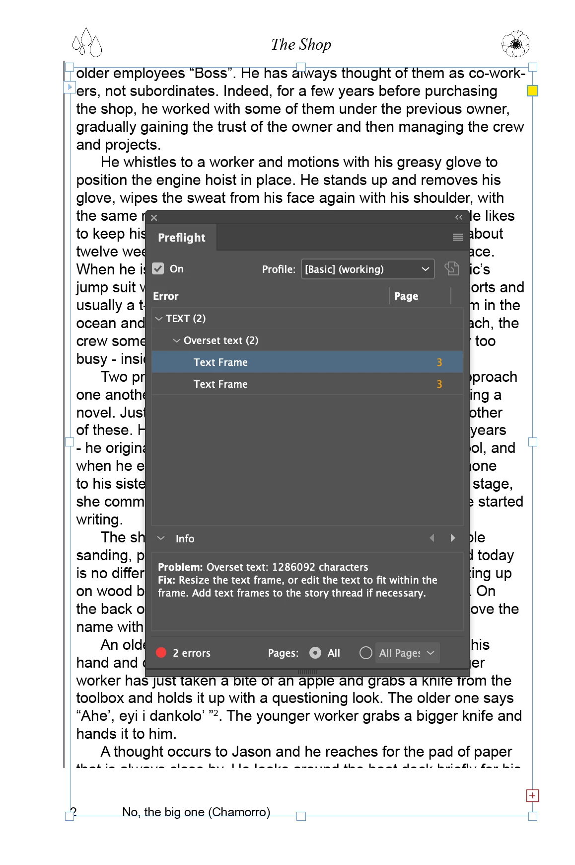 I cannot figure out how to find the overset text/TIFFs so that I can delete them.