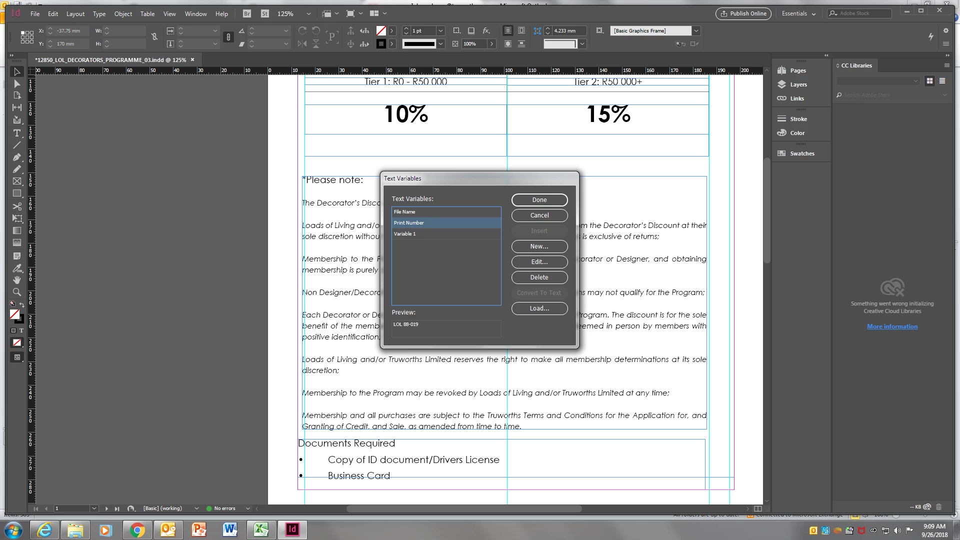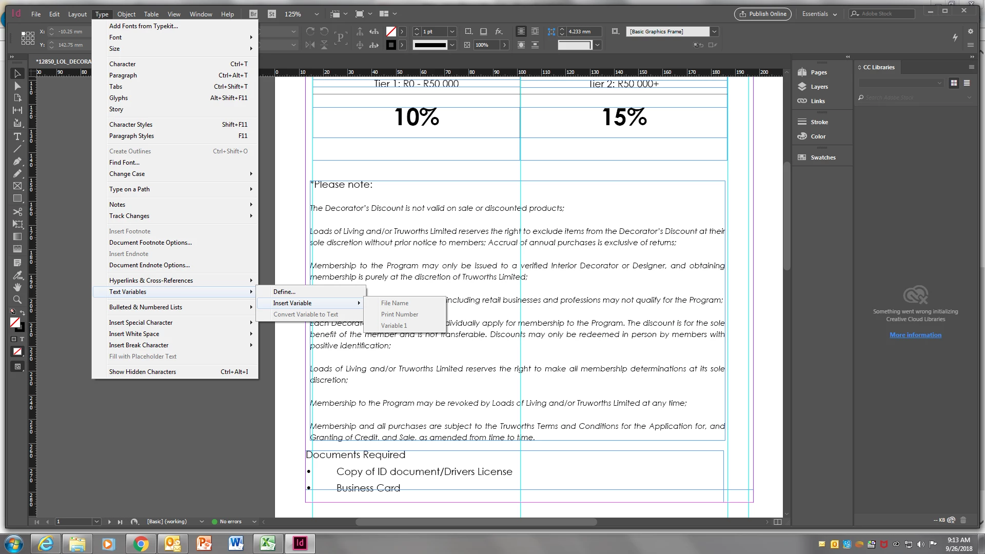 cannot insert/edit indesign variable