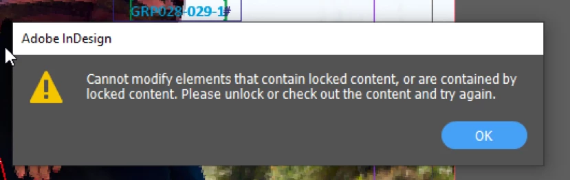 'Cannot modify elements that contain locked content, or are contained by locked content. Please unlock or check out the content and try again.'