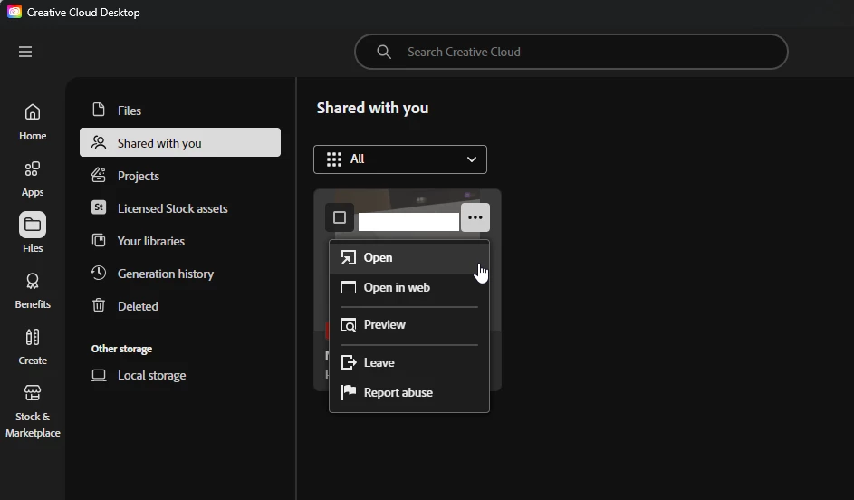 The Problem: In InDesign, I can see the icons for files shared with me, but clicking them does nothing. Occasionally, the loading cursor appears briefly, but the file never opens. Local files work perfectly.