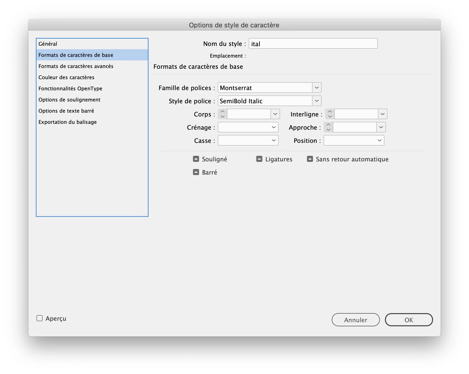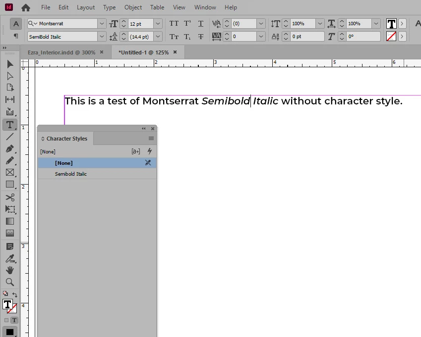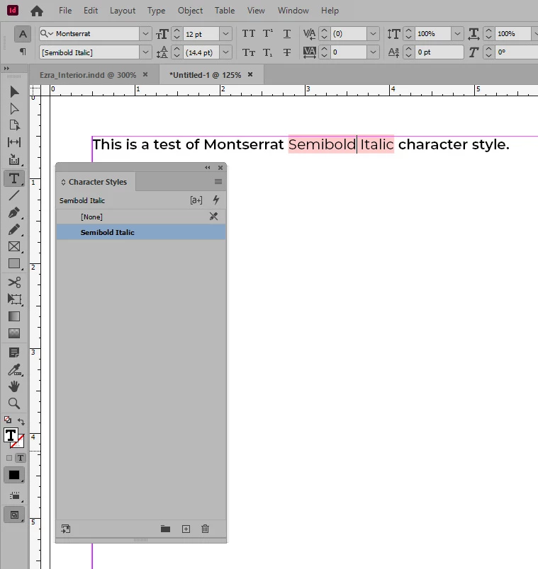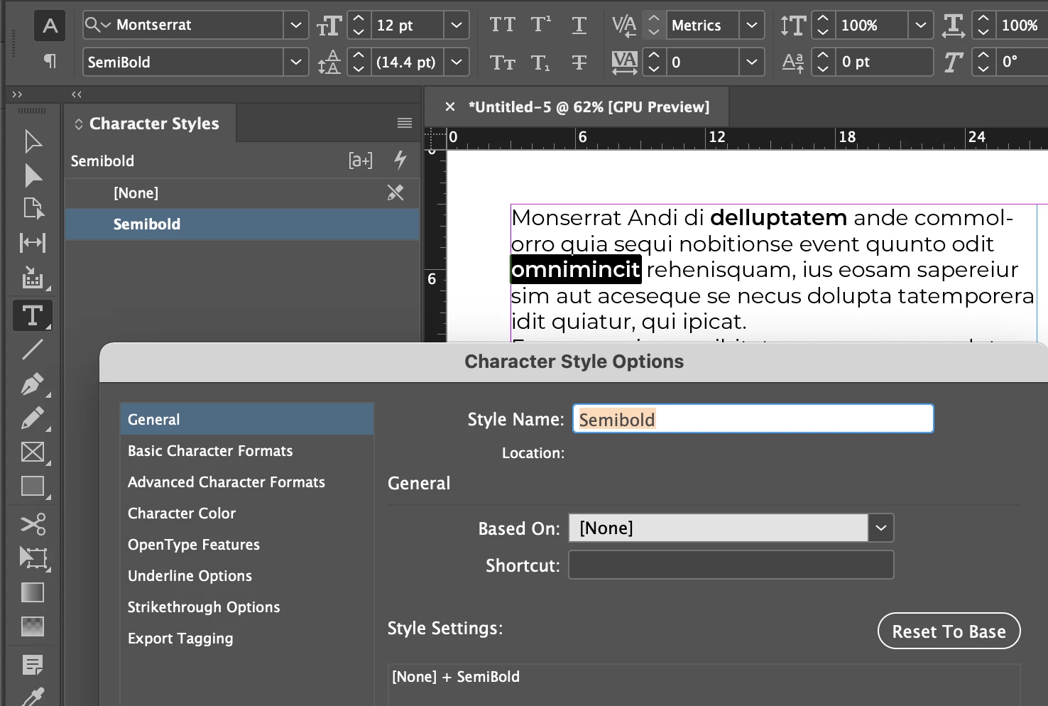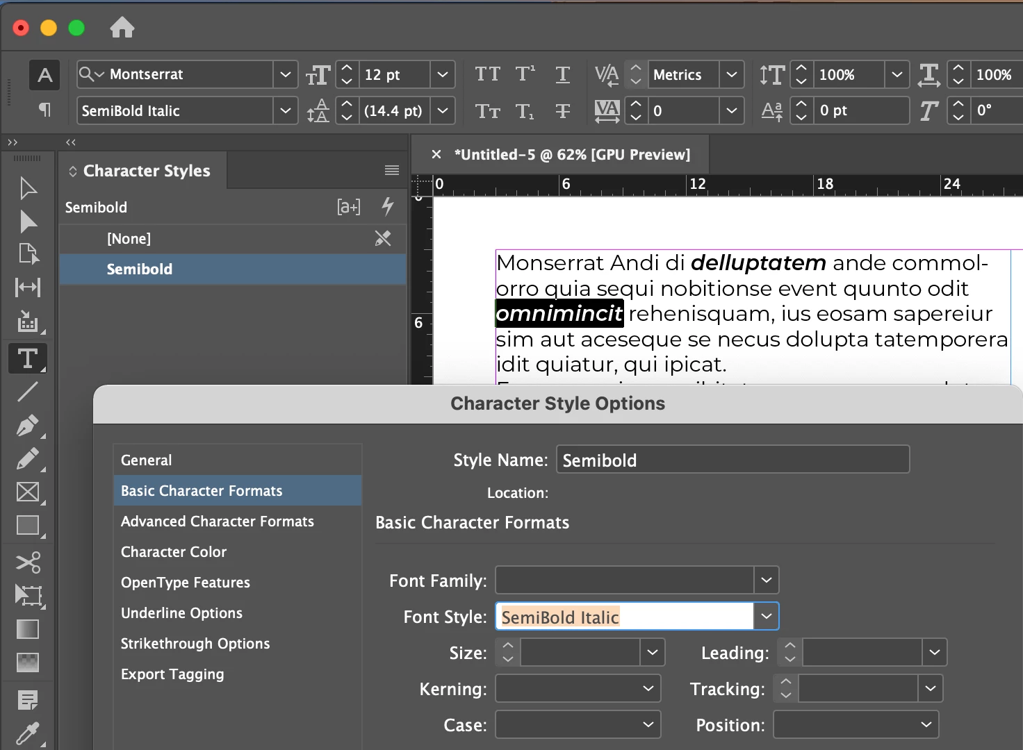 I need to create a semibold italic character style. Simple enough. Problem is, I'm using the font Montserrat, and it's semibold italic is spelled with an uppercase B: SemiBold.