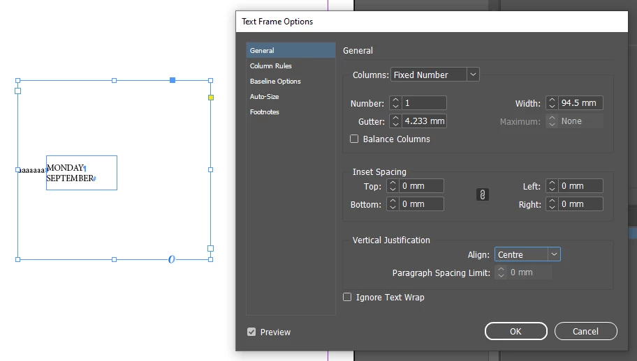 And then also, everything depends where you'll anchor your MONDAY... TextFrame.