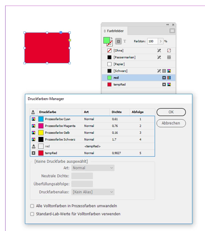 Before. Just spot color "red" in the document. I gave it a "green" look so that one can see the difference better when that has changed: