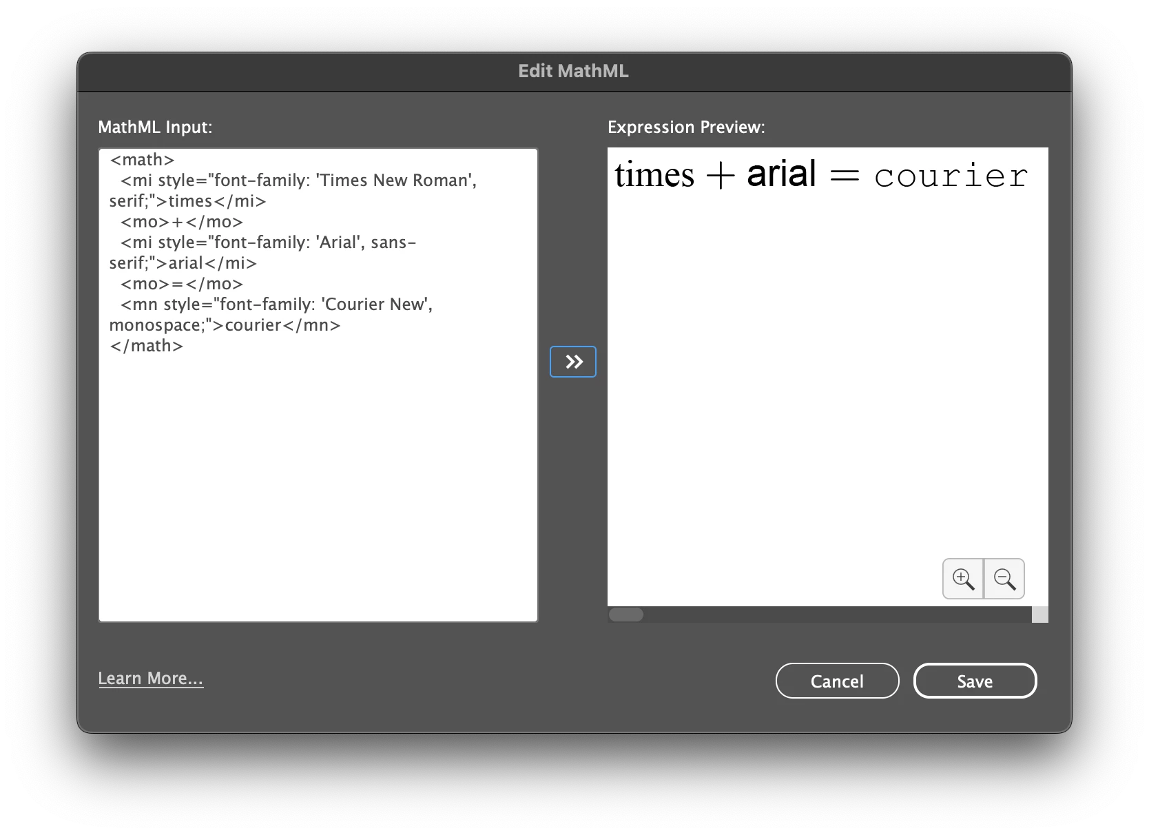 Hallo, is it possible to change the font used for creating mathematical expressions?