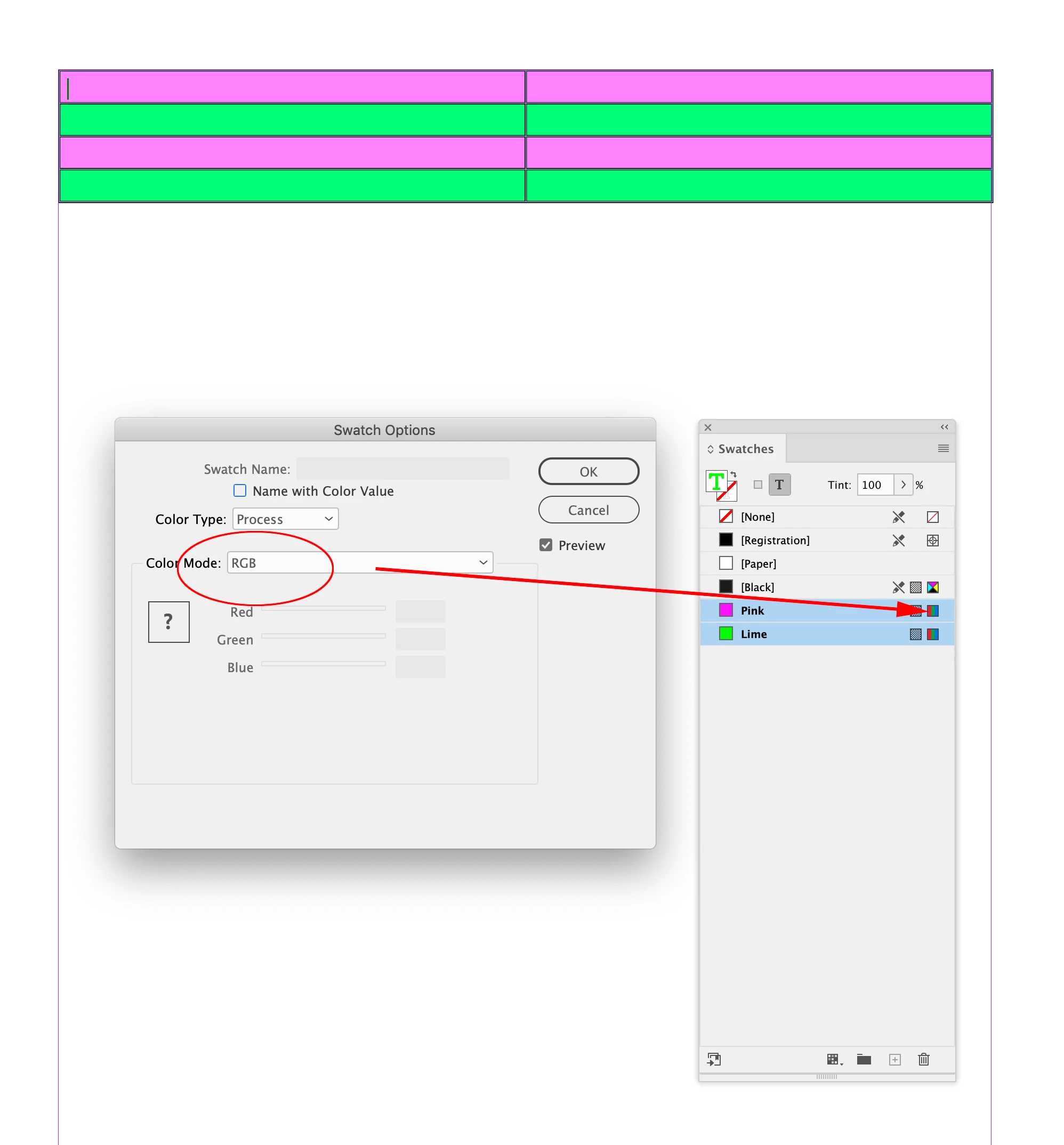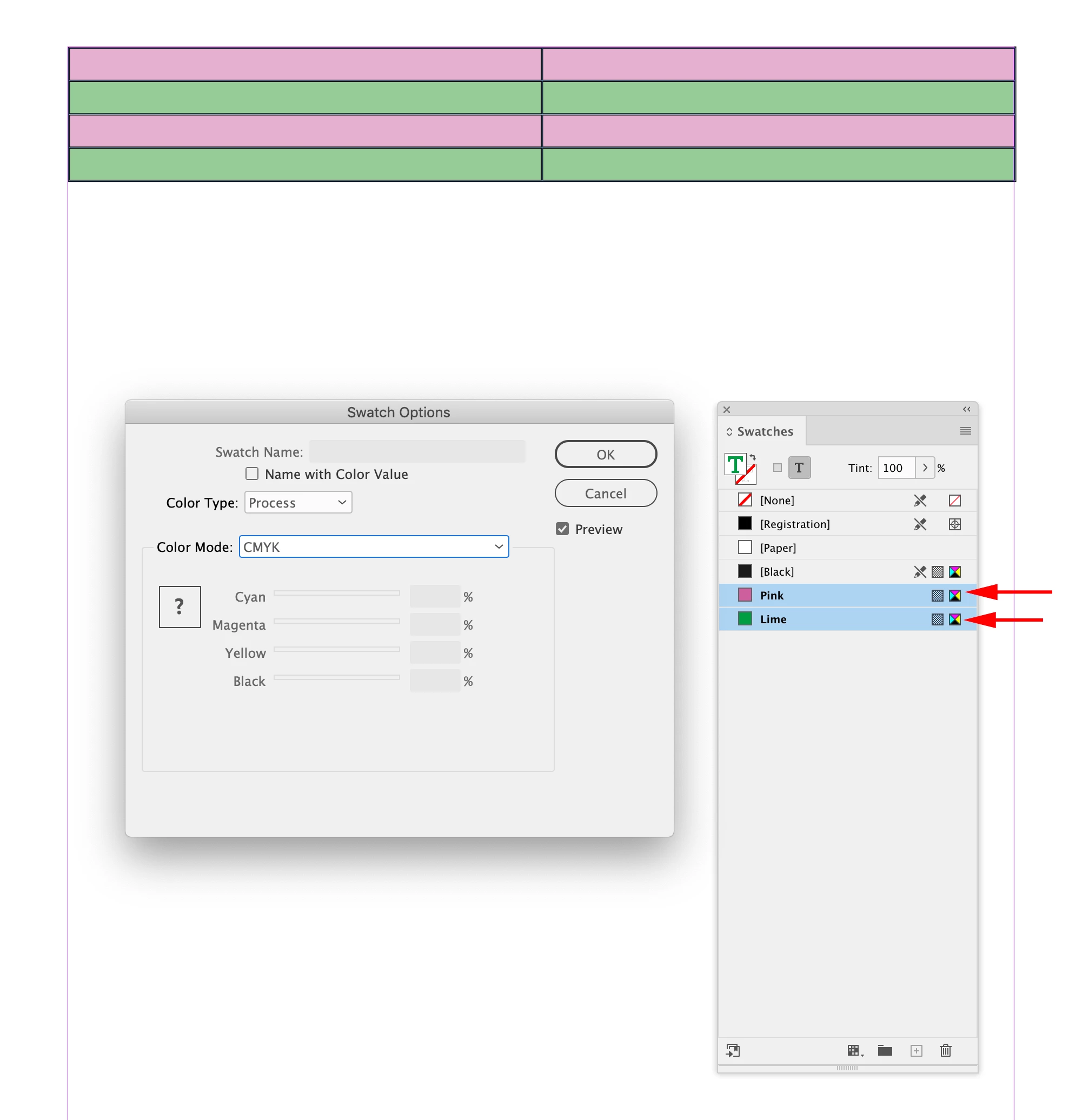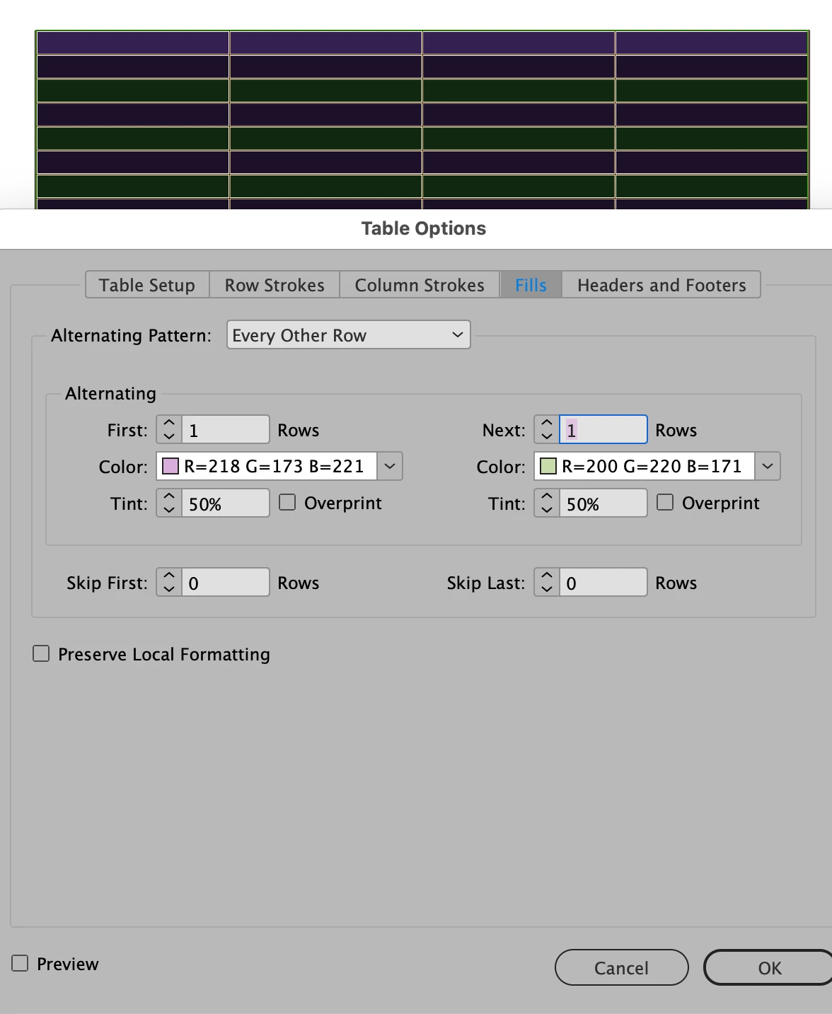 Change from RGB to CMYK alternating row fill color in a table