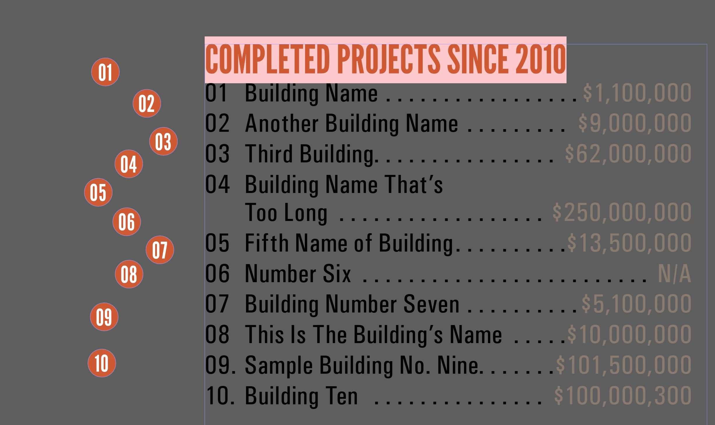 I'd like to be able to add a building to the list, alphabetically, and change the corresponding numbers that follow.