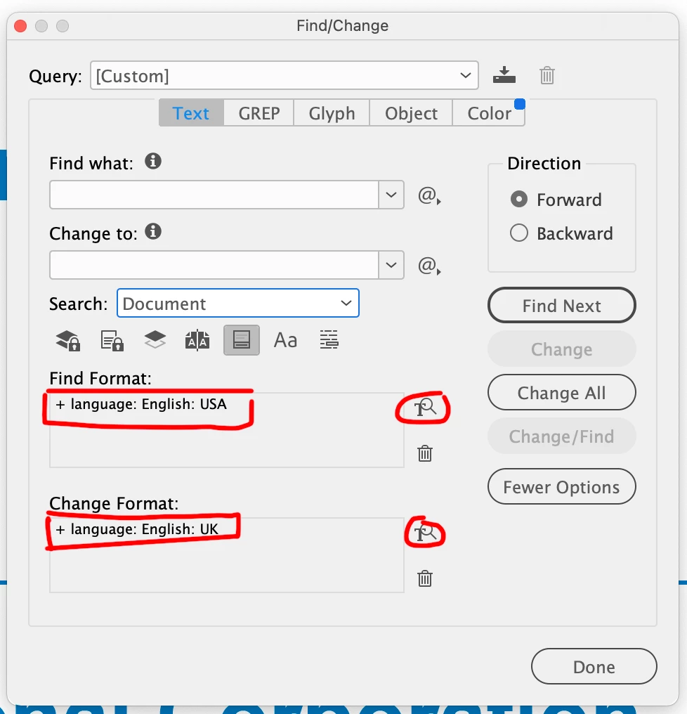 3. Open the Type > Character (Cmd-T) panel and confirm it has English UK at the bottom.