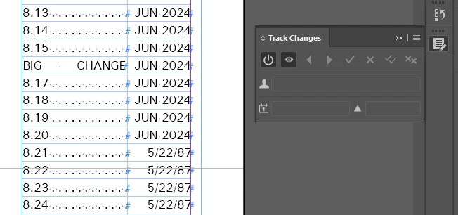 I've activated change-tracking as documented here, but no indication of changes ever shows up. Screen shot attached.