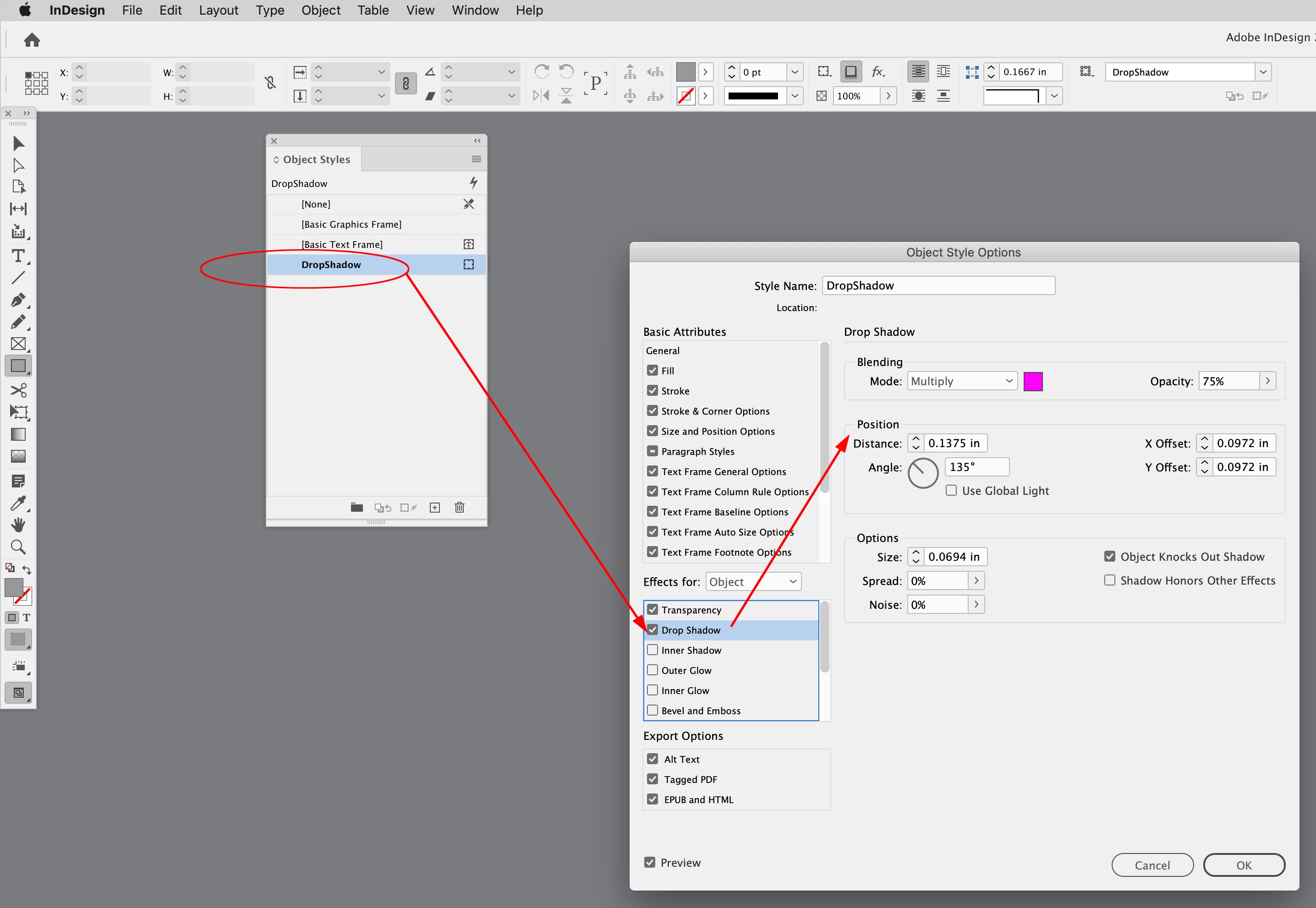 Changing default drop shadow setting indesign CC