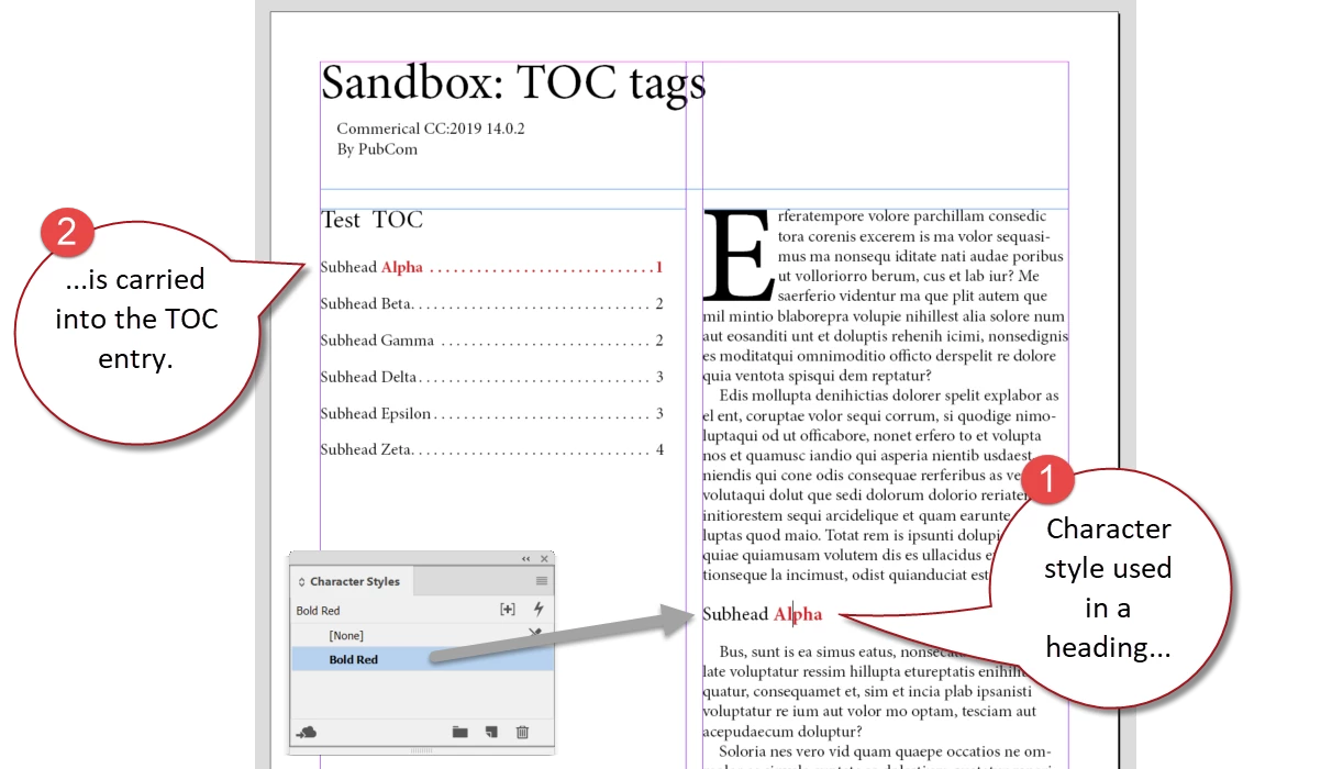 Character Styles in Table of Contents Entries